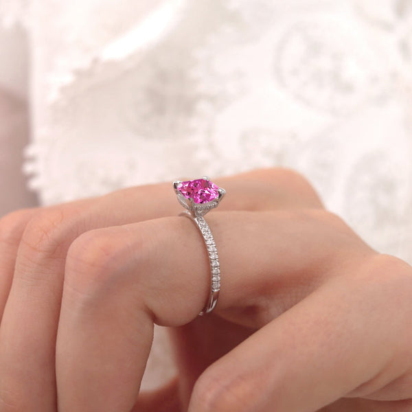 Design-wise, halos also offer versatility. A round pink sapphire delivers timeless softness, while an oval cut elongates the finger gracefully. Cushion cuts introduce a vintage-inspired romance, and each shape interacts differently with the halo’s symmetry. This allows wearers to tailor their ring not just to their style, but to how they want the ring to feel bold, delicate, modern, or heirloom-inspired.